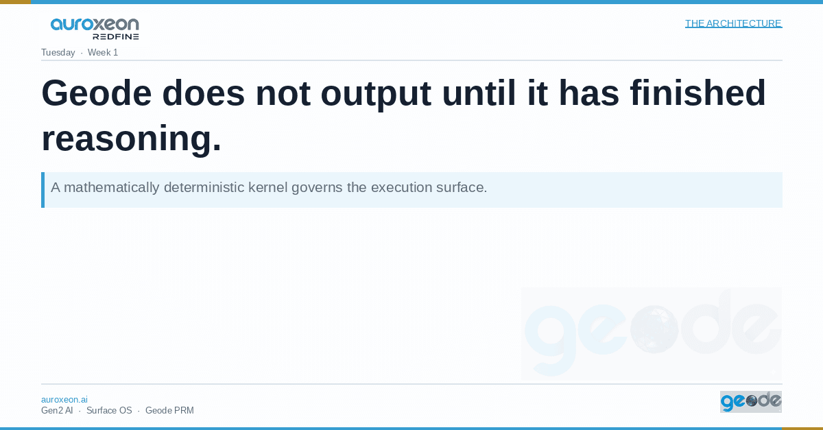 Every Geode PRM contains a mathematically deterministic reasoning kernel. This is not a prompt layer. It is not a guardr…